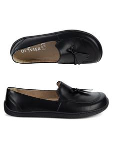 Olivier BAREFOOT Eleganckie Damskie minimalistyczne mokasyny skórzane 1280 czarne lico