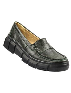 Wygodne damskie mokasyny ze skóry naturalnej Helios Komfort 659S, zielone