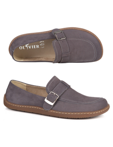 Damskie buty barefoot skórzane Olivier Anna klamerka szary nubuk