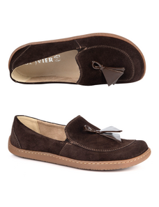 Buty mokasyny BAREFOOT damskie skórzane Olivier Silk brąz welur