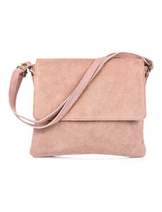 Vera Pelle Różowa Włoska Torebka damska zamszowa listonoszka z klapą B67