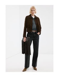 MANGO - Dżinsy z prostymi nogawkami i niskim stanem black denim - 40 - Kobieta