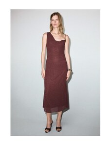 MANGO - Asymetryczna sukienka ze strasem kasztanowy - XS - Kobieta