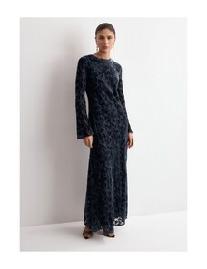 MANGO - Sukienka devoré z rozkloszowanymi rękawami ciemnoniebieski - L - Kobieta