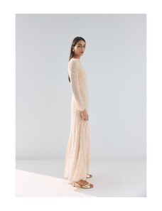 MANGO - Sukienka z cekinami i odkrytymi plecami kremowy / écru - S - Kobieta