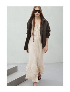MANGO - Długa sukienka z falbanami lodowy szary - XS - Kobieta
