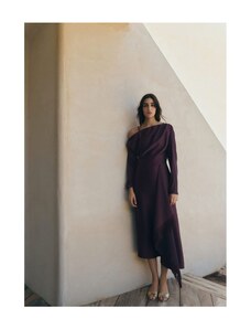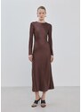 MANGO - Rozkloszowana sukienka midi brązowy - XL - Kobieta