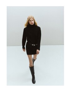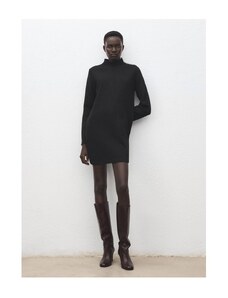 MANGO - Sukienka z dzianiny z golfem czarny - S - Kobieta