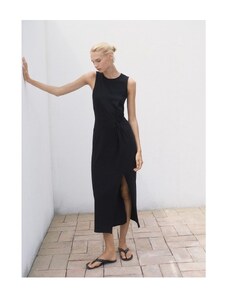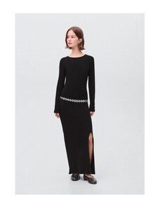 MANGO TEEN - Długa sukienka z rozcięciem z boku czarny - L - Dziewczyna