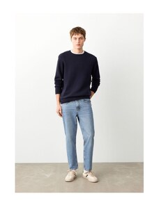 MANGO MAN - Proste jeansy z bawełny i lnu ciemnoniebieski vintage - 46 - Mężczyzna