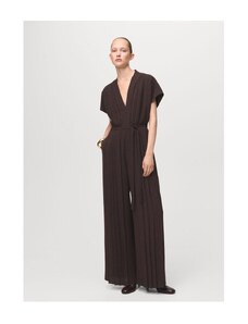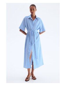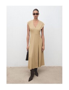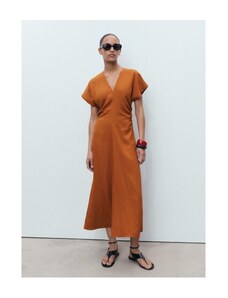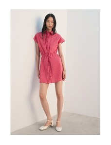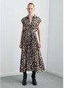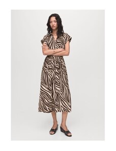 MANGO - Sukienka koszulowa z nadrukiem i paskiem brązowy - S - Kobieta