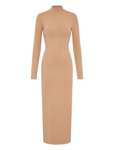 Influencer Sukienka z dzianiny camel