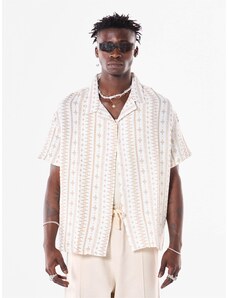 MC2 Saint Barth Sifnos – luksusowa koszula męska z lnuMC2 Saint Barth Sifnos to koszula łącząca ponadczasową elegancję z wakacyjnym luzem. Wykonana z wysokiej jakości, przewiewnego lnu, zapewnia komfort noszenia nawet w najbardziej upalne dni. Klasyczny krój z krótkim rękawem, kieszonką na piersi i zapięciem na guziki, gwarantuje uniwersalność i styl. Beżowa tkanina ozdobiona została granatowym nadrukiem przedstawiającym palmy, surferów i vany – elementy te nadają modelowi swobodny, letni charakter.Materiał: 100% len premiumFason: klasyczny, regular fitWzór: motywy plażowe – palmy, surferzy, vanyZapięcie: guziki perłoweDetale: subtelna faktura, precyzyjne wykończenieIdealna w zestawieniu z szortami, lnianymi spodniami lub chinosami – doskonała baza stylizacji na lato w duchu nowoczesnej elegancji.