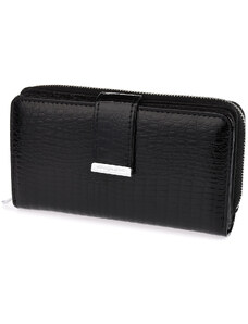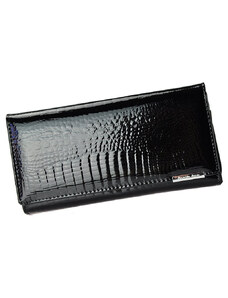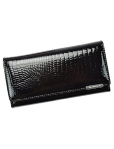 Czarny skórzany portfel damski lakierowany duży poziomy elegancki Jennifer Jones E72