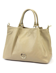 Estro: Jasnobeżowa skórzana torebka damska typu shopper ze złotymi okuciami
