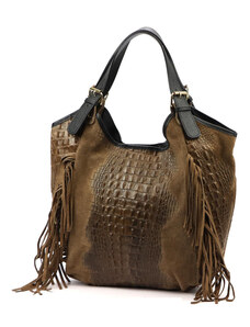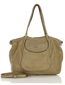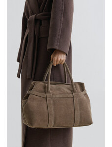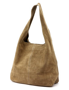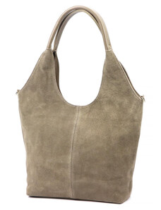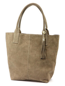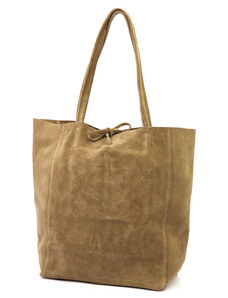 Estro: Ciemnobeżowa torebka damska na ramię typu tote z włoskiego weluru naturalnego Premium
