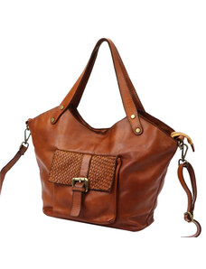 Vera Pelle L Artigiano skórzana damska torebka shopperbag na ramię duża kieszenie