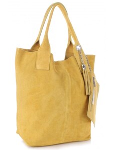 Other Włoska Torebka Skórzana Shopper bag Zamsz Naturalny Żółta