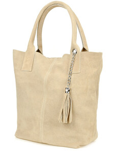 Vera Pelle BEŻOWA DUŻA A4 LEKKA ZAMSZOWA SKÓRZANA TORBA WOREK SHOPPERKA Z SASZETKĄ L82