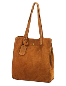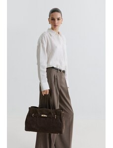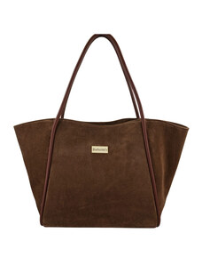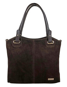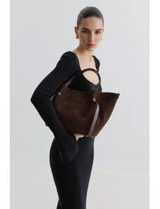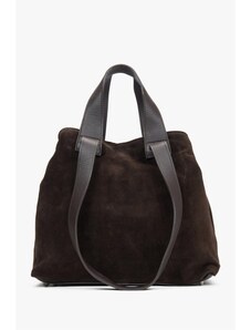 Estro: Ciemnobrązowa torebka typu shopper z włoskiego weluru naturalnego