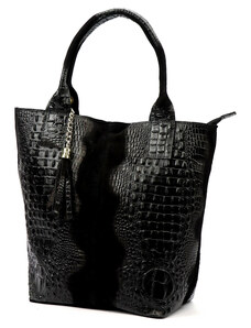Estro: Czarna elegancka torebka damska typu tote ze skóry naturalnej
