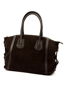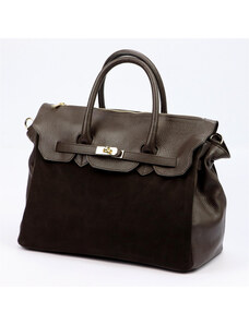Barberinis Duża elegancka torebka z naturalnej skóry i zamszu - Brązowa ciemna
