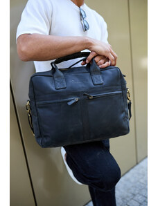 Duża solidna skórzana torba Beltimore na laptopa dokumenty czarna nubuk M87