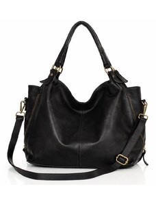 Estro: Czarna torba damska typu shopper z włoskiej skóry naturalnej Premium