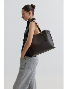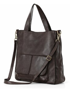 Estro: Ciemnobrązowa torebka damska typu shopper z włoskiej skóry naturalnej Premium