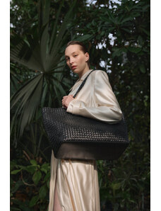 Estro: Czarna shopperka damska z plecionej skóry naturalnej