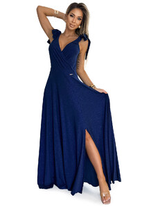 NUMOCO 589-1 Long dress with subtle shine and corset lacing at the back - black with glitter
