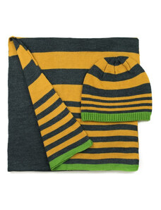 ModaMia Żółto-zielony dwukolorowy szal damski z dzianiny