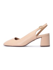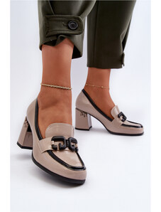 Beżowe czółenka skórzane damskie na dekoracyjnym niskim klocku z ozdobą Casu SL24X10-A