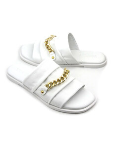 Klapki damskie ze złotym łańcuchem - VENEZIA 267040, białe