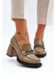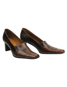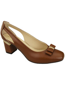 Buty Czółenka Damskie Brązowe z Naturalnej Skóry z Ozdobnym Obcasem 199 ElitaBut
