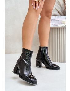 S.Barski Lakierowane Botki Na Słupku Ocieplane Z Ozdobą D&A MR880-021 Czarne