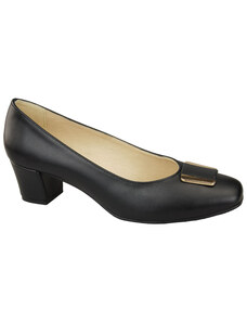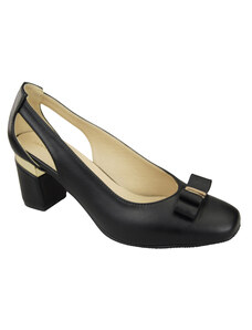Buty Czółenka Damskie Czarne z Naturalnej Skóry z Ozdobnym Obcasem 199 ElitaBut
