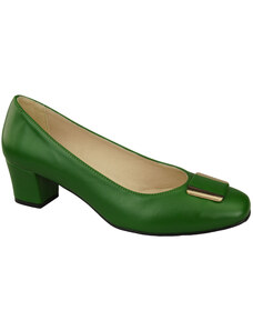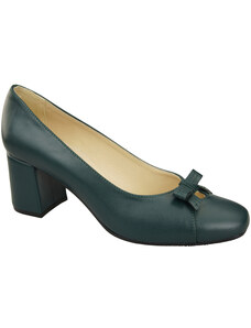 Czółenka Damskie z Kokardką Malachitowe Skóra Naturalna i Niski Obcas 203 ElitaBut