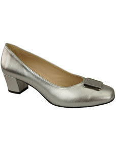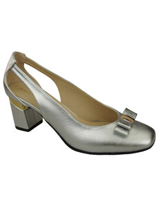 Buty Czółenka Damskie Srebrne z Naturalnej Skóry z Ozdobnym Obcasem 199 ElitaBut