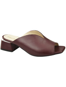 Obuwie Damskie Klapki Na Obcasie Bordowe Skóra naturalna 210 ElitaBut