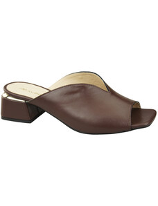 Obuwie Damskie Klapki Na Obcasie Czekoladowe Skóra naturalna 210 ElitaBut