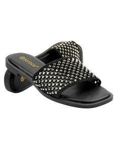 Obuwie Damskie Sandały Czarne Błyszczące z Kryształkami Skóra naturalna 215 ElitaBut