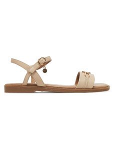 Wygodne Obuwie Damskie Sandały Beżowe Płaski Złoty Obcas Skóra naturalna 207 ElitaBut