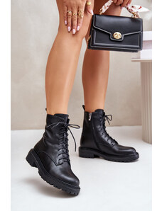 Butosklep Skórzane Botki Workery Ocieplane Na Zamek Czarne Elosie