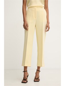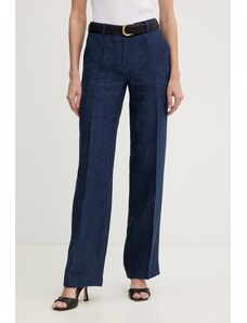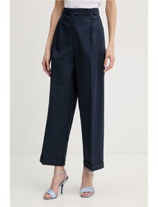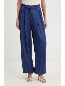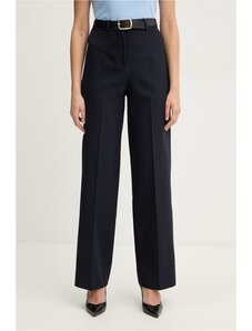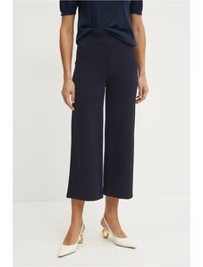Granatowe spodnie materiałowe OUI to wszechstronny element garderoby, który łączy komfort dzianiny z eleganckim krojem. Ten model, charakteryzujący się wysokim stanem i prostymi nogawkami, sprzyja tworzeniu stylizacji casualowych, klasycznych oraz smart casual. Wykonane z elastycznej dzianiny z dodatkiem wiskozy, zapewniają swobodę ruchów i przyjemne odczucia w kontakcie ze skórą, będąc doskonałą bazą dla wielu zestawień.