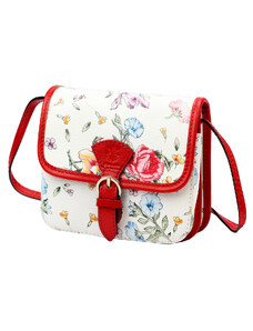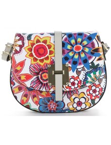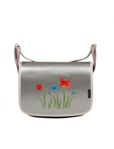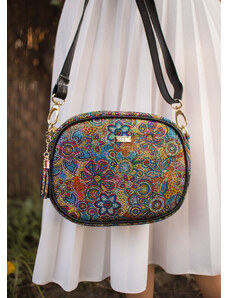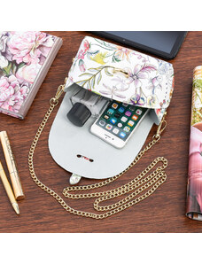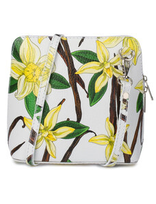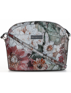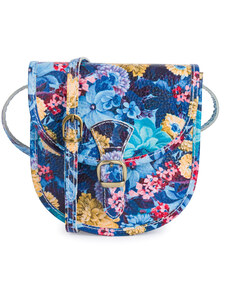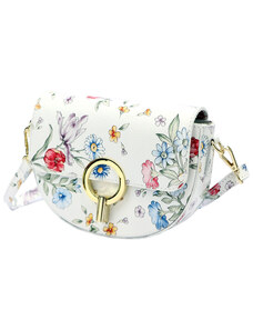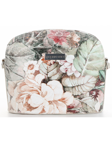 Model Z-11-E to lekka i zarazem pakowna torebka wykonana ze skóry naturalnej. Torebka na licu printowana jest modnym deseniem kwiatowym. Na rogach torebki, aby podkreślić okrągły kształt torebki zastosowano granatowe lamówki pokryte skórą naturalną. Regulowany pas na ramię został wykonany z wysokiej jakości skóry naturalnej w kolorze granatu. Pasek na ramię został pokryty warstwą ochronną chroniącą skórę przez przetarciami i wodą (np. delikatny deszcz, zachlapanie). Od góry torebka posiada pojemną komorę zapinaną na suwak na którym znajduje się stylowy chwost również wykonany ze skóry naturalnej.