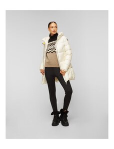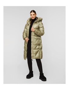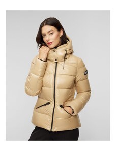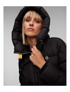 Kurtka puchowa damska Parajumpers Janet to nowoczesna propozycja o przemyślanym designie. Wykonana z tafty nylonowej z powłoką hydrofobową. Dodatkowo charakteryzuje się wiatroszczelnością oraz właściwościami oddychającymi, co czyni ją doskonałą propozycją na zimowe, mokre dni. Wypełnienie z naturalnego kaczego puchu zagwarantuje najwyższy komfort termiczny podczas niskich temperatur. Kurtka o przedłużonym fasonie, zapinana na dwukierunkowy, funkcjonalny zamek. Wyposażona w obszerny, głęboki kaptur regulowany taśmą, dwie kieszenie boczne zamykane suwakiem oraz kieszeń wewnętrzną. Rękawy zakończone dzianinowym mankietem, dla zapewnienia dodatkowej ochrony przed zimnem. Boki kurtki z rozcięciami zapinanymi na suwak, abyś niezależnie od sytuacji miała pełną swobodę ruchów. Na lewym rękawie naszywka z logo marki. Przy kołnierzu charakterystyczny żółty pasek z zatrzaskiem.