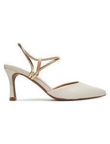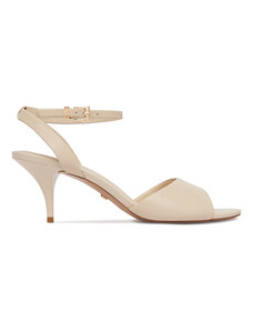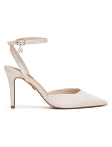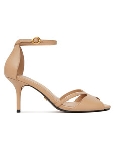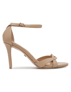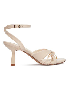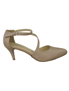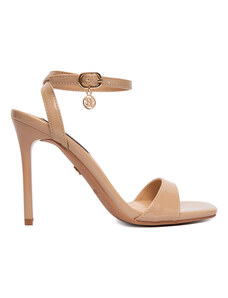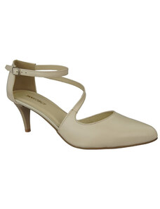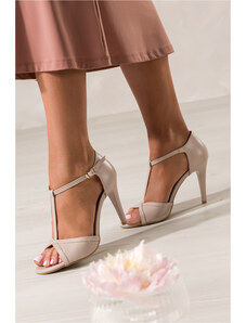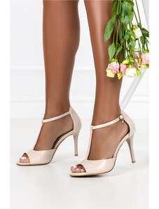 Beżowe sandały skórzane damskie szpilki t-bar z zakrytą piętą PRODUKT POLSKI Casu 7118-794