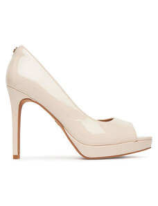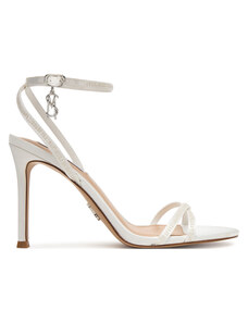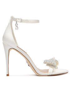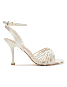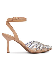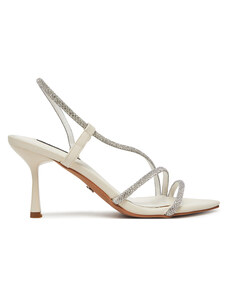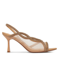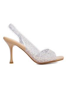 Beżowe sandały damskie szpilki obcas kieliszek siateczka z cyrkoniami perła Carla O6801