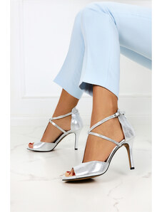 Srebrne sandały Casu na szpilce z zakrytą piętą polska skóra 2111